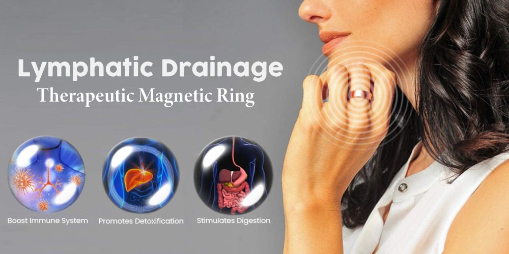 The Lymphatic Drainage Therapeutic Magnetic Ring’s electromagnetic charge emission provides healing to your body by rearranging the cells and helping the lymphatic system drain and remove excess fluid in the body that causes swelling of lymph nodes.